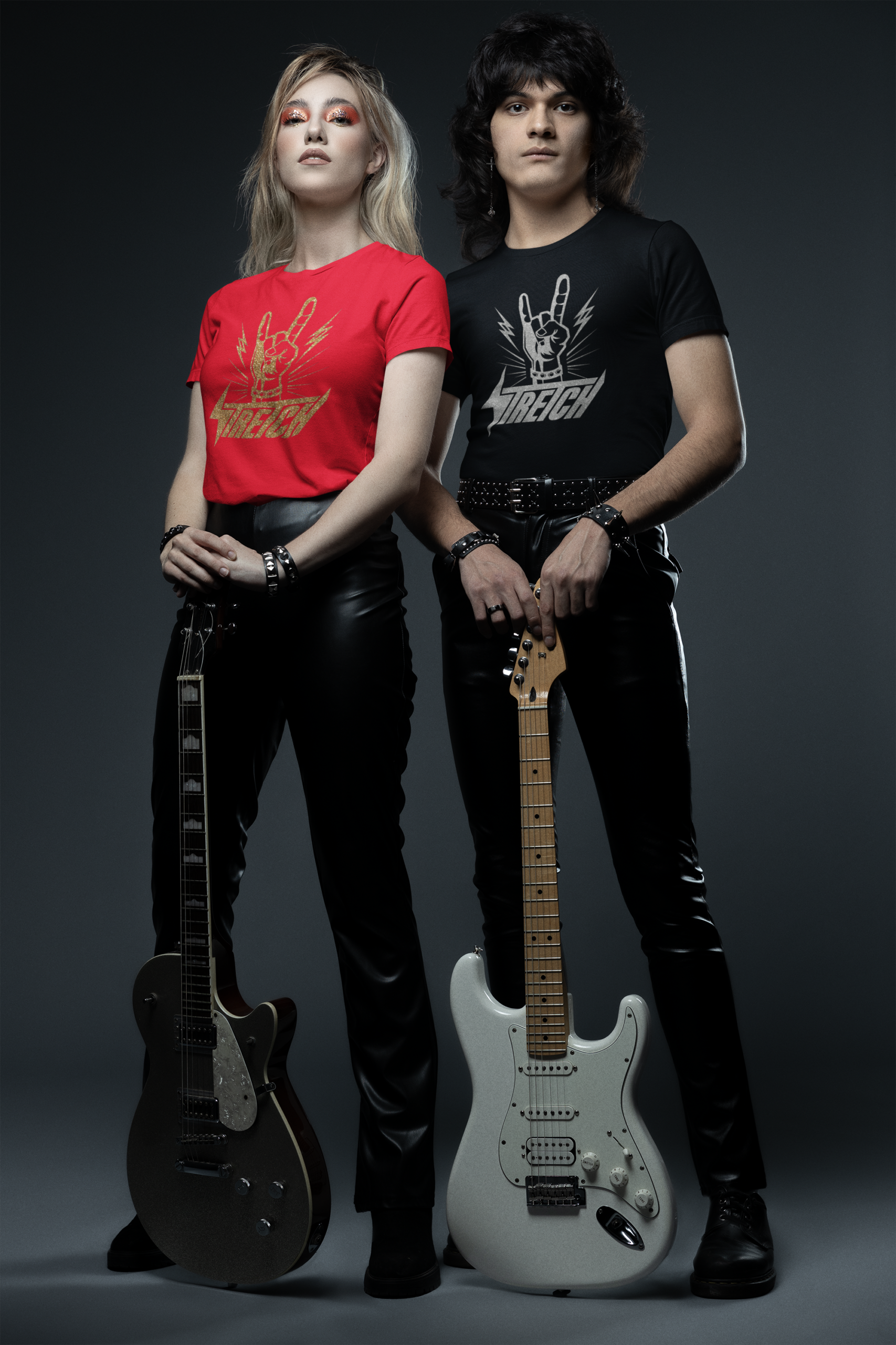 For those who rock! This eye catching special edition of the popular STRETCH “Rock Horns” T-shirt, adorned with gold glitter on the logo, shows your love for great tunes and killer style.